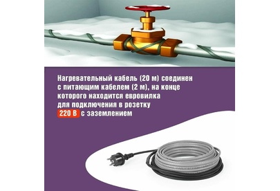Комплекты саморегулирующегося кабеля MSR-PB REXANT предназначены для защиты от замерзания бытовых трубопроводов, счетчиков воды, вентилей и т. п. Нагревательный кабель соединен с питающим кабелем, на конце которого находится евро-вилка для подключения в розетку с заземлением. Нагревательный кабель является саморегулирующимся и в нормальных условиях его температура не превышает 60 °C. Комплекты подходят для использования как в помещениях, так и на улице. Кабель может быть смонтирован на поверхности как металлической, так и пластиковой трубы, под теплоизоляцией. Кабель может пересекаться сам с собой.