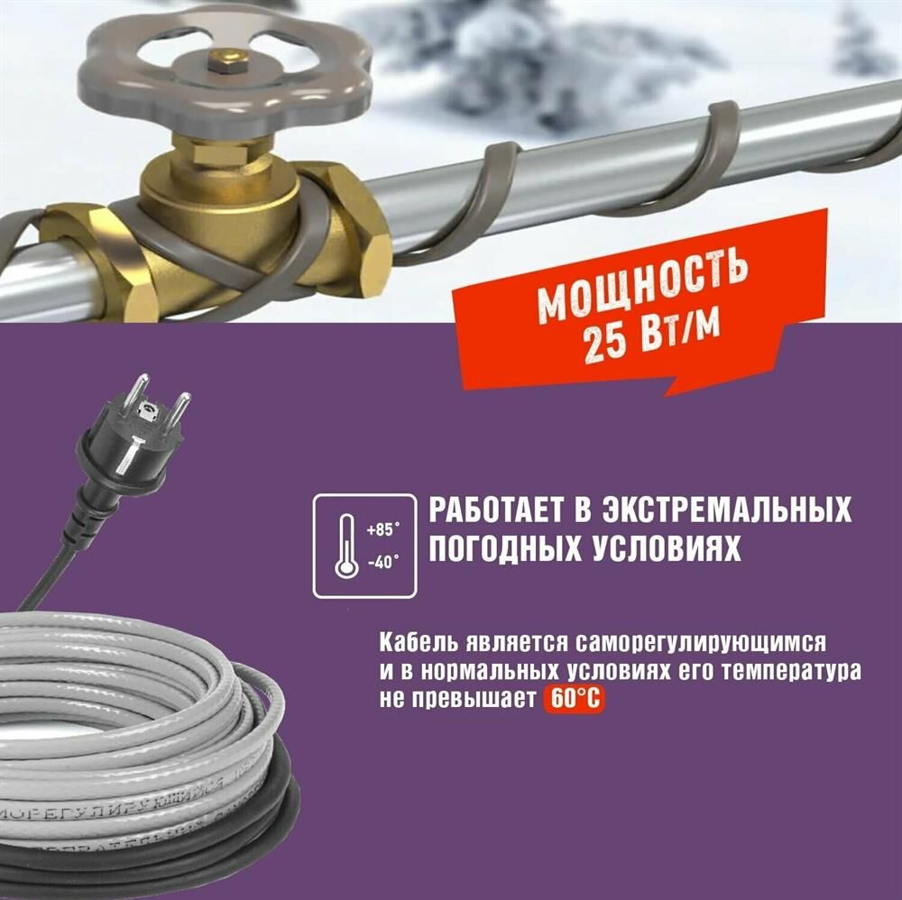 REXANT Кабель греющий саморегулирующийся модель SRL Extra Line 25MSR-PB, на трубу, 20м/500Вт