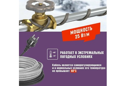 REXANT Кабель греющий саморегулирующийся модель SRL Extra Line 25MSR-PB, на трубу, 6м/150Вт