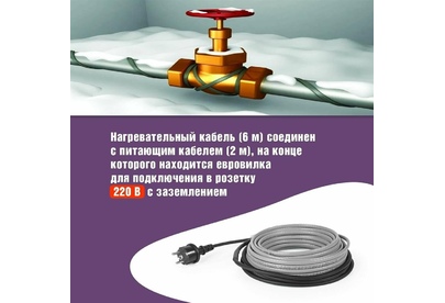 Комплекты саморегулирующегося кабеля MSR-PB REXANT предназначены для защиты от замерзания бытовых трубопроводов, счетчиков воды, вентилей и т. п. Нагревательный кабель соединен с питающим кабелем, на конце которого находится евро-вилка для подключения в розетку с заземлением. Нагревательный кабель является саморегулирующимся и в нормальных условиях его температура не превышает 60 °C. Комплекты подходят для использования как в помещениях, так и на улице. Кабель может быть смонтирован на поверхности как металлической, так и пластиковой трубы, под теплоизоляцией. Кабель может пересекаться сам с собой.