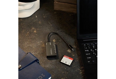 Необходимо всего лишь вставить карточку в картридер и подключить его к Type-C порту.