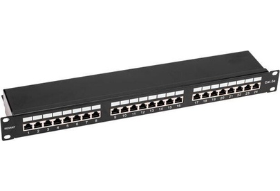 Патч-панель (коммутационная панель) STP категории 5e используется при построении структурированных кабельных сетей. Относится к пассивному сетевому оборудованию. Служит для быстрой и удобной коммутации кабелей между активным сетевым оборудованием и рабочими местами (станционной и абонентской частями). Позволяет организовать пространство внутри информационных шкафов и упорядочить кабельную разводку.