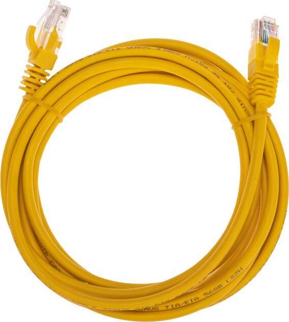 Патч-корд U/UTP желтого цвета длиной 3 м предназначен для подключения активного и пассивного сетевого оборудования в составе структурированной кабельной системы. Относится к категории 5е: полоса пропускаемых частот – 100 МГц. Внешняя оболочка изготовлена из безгалогенного компаунда, который не распространяет горение, не дымится и не выделяет вредных веществ.