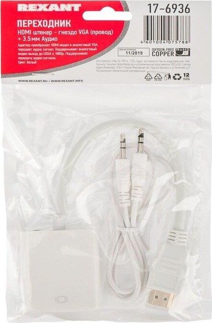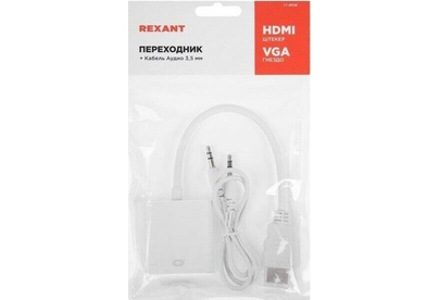 Адаптер преобразует видео+аудио сигнал с разъема HDMI в аналоговый VGA + 3.5mm аудио. Так как многие современные устройства производят уже только с выходом HDMI, отказавшись от устаревших интерфейсов передачи аудио и видео контента, и часто бывает, что мы не в силах участвовать в этой гонке за электронными новшествами то приходиться искать пути решения из данной ситуации. Таким и является переходник HDMI REXANT, ведь он позволит отобразить и проиграть видео от устройства с HDMI выходом на любой монитор, телевизор или экран старого образца, имеющий разъем VGA и 3.5mm аудио jack. Поддерживает аналоговый видео выход до UXGA и 1080p.