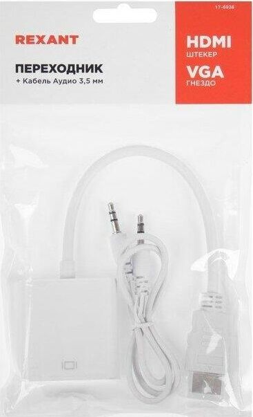 REXANT ПЕРЕХОДНИК ШТЕКЕР HDMI - ГНЕЗДО VGA, ПРОВОД + ШНУР СТЕРЕО 3,5 ММ 17-6936