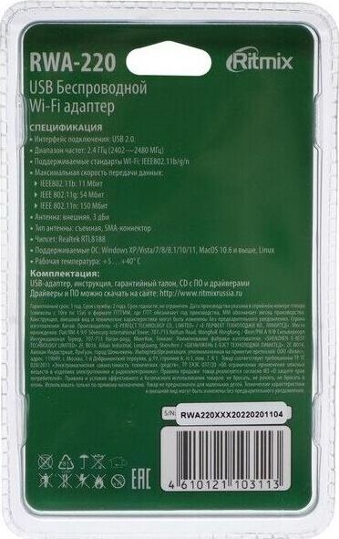 Миниатюрный USB адаптер со съемной антенной для ПК или ноутбука позволит подключить его к сети WiFi на частоте 2.4ГГц и создать высокоскоростное подключение до 150Мбит/с. Превосходно подходит для мест с осложнёнными условиями приёма сигнала.
