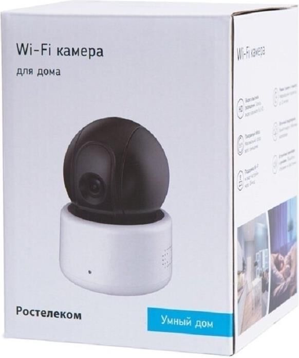 Цвет изображения: цветная. Тип матрицы: CMOS. Разрешение камеры: 2. Исполнение: внутренняя. Стандарт Wi-Fi: 802.11 b/g/n. Форматы сжатия видео: H.264. Дистанция ночной съемки: 10. Особенности: Функция автослежения. Камера работает только с сервисом Облачное видеонаблюдение от Ростелеком (6 месяцев сервиса в подарок).. Вес товара: 262. Комплектация: Камера, кабель питания, адаптер питания, основание, шаблон для сверления отверстий, комплект винтового крепления, краткое руководство пользователя и гарантийный талон.. Рабочая температура: от -10 до +45. Рабочая влажность: до 95. Тип конструкции камеры: купольная. Напряжение питания: DC 5 В. Размер матрицы: 1/2.7". Цифровое шумоподавление: 3D DNR. Угол обзора, мин: 90. Угол обзора, макс: 355. Максимальный объем карт памяти: 64. Тип объектива: фиксированное. Габариты упаковки (ед) ДхШхВ: 0.12x0.12x0.16. Вес упаковки (ед): 0.26. Тип камеры: IP. Поддержка Wi-Fi: есть. Диафрагма: f/2. Гарантия: 24 мес.. Фокусное расстояние: 3.6 мм. Разрешение: 1920 х 1080. Скорость пе