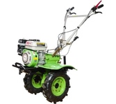 Сельскохозяйственная машина Huter MK-8000P BIG FOOT используется для обработки почвы - рыхления, боронования, выравнивания, прополки и других работ на приусадебных, огородных и садовых участках. Агрегат имеет бензиновый двигатель мощностью 8 лошадиных сил и три передачи, две вперед и одну назад. Для удобства оператора все переключатели находятся на ручках агрегата, а резиновые накладки обеспечивают удобное удержание. Металлический щиток предотвращает попадание грунта на оператора и двигатель. Большие колеса BIG FOOT повышают проходимость техники. Технические характеристики: Мощность двигателя: 8,0 л.с. Тип двигателя: бензиновый Число тактов: 4 Тип топлива: бензин АИ-92 Способ охлаждения: воздушный Мощность: 5,88 кВт Передачи: 2 вперед / 1 наза