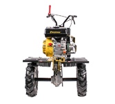 Сельскохозяйственная машина Huter MK-11000P используется для обработки почвы - рыхления, боронования, выравнивания, прополки и других работ на приусадебных, огородных и садовых участках. Агрегат имеет бензиновый двигатель мощностью 11 лошадиных сил и три передачи, две вперед и одну назад. Для удобства оператора все переключатели находятся на ручках агрегата, а резиновые накладки обеспечивают удобное удержание. Металлический щиток предотвращает попадание грунта на оператора и двигатель. Ширина обработки 115 сантиметров вместе с топливным баком в 6 литров позволяют обрабатывать большие территории без дозаправки. Технические характеристики: Мощность двигателя: 11 л.с. Тип двигателя: бензиновый Число тактов: 4 Тип топлива: бензин АИ-92 Способ охлаждения: воздушный Мощность: 8,09
