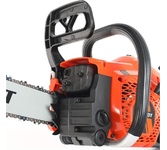 Бензопила Hanskonner HGC1618. Маневренная, износостойкая модель с быстрым разгоном отличается удобством в эксплуатации и подходит для выполнения работ в стесненных условиях. Бензопила оптимально подходит для выполнения внутрихозяйственных работ и удобна для ухода за деревьями. Верхнее расположение основной ручки позволяет оператору легко управлять бензопилой даже находясь на высоте. Эргономичное расположение рукояток относительно центра тяжести делает инструмент удобным и хорошо сбалансированными, что позволяет комфортно контролировать его в любых ситуациях. Безопасность работы обеспечивается предохранительной клавишей, предотвращающей случайное нажатие газа, ограничителем цепи, защитным щитком для правой руки, а также цепным тормозом, активируемым принудительно либо силой инерции. Два способа активации тормоза цепи повышают безопасность труда. Двигатель с хонингованной, покрытой твёрдым хромом поршневой группой, прекрасно сбалансирован, стабильно работает без потери мощности при изменении положения инструмен