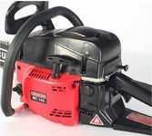 Мощность 2800/3,8 Вт/л.с;3000 об/мин; Объем двигателя 56 см3; топливный бак 560 мл;масляный бак 280 мл; Длина шины 18 / 45 дюйм/см; Шаг пильной цепи 0,325 дюймы; Количество звеньев цепи 72 шт.;Уровень мощности звука 116 дБ;Вес 6,85 кг;