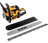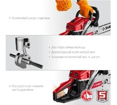Тип двигателя бензиновый 2-тактный. Мощность 3.5 л. с.. Класс пилы бытовая. Количество звеньев 72 шт. Объем масляного бака 260 мл. Объем топливного бака 550 мл. Уровень шума 114 дБ. Объем двигателя 52. Длина шины 450 мм. Шаг цепи 0.325 дюйма. Толщина ведущего звена цепи 1.5 мм. Число оборотов холостого хода 3000 об/мин.