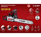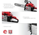 Тип двигателя бензиновый 2-тактный. Мощность 3.6 л. с. Класс пилы бытовая. Количество звеньев 76 шт. Объем масляного бака 250 мл. Объем топливного бака 600 мл. Уровень шума 113 дБ. Объем двигателя 58. Длина шины 500 мм. Шаг цепи 0.325 дюйма. Толщина ведущего звена цепи 1.5 мм. Число оборотов холостого хода 3000 об/мин.