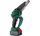 Напряжение АКБ: 20 В Емкость АКБ: 2000 мАч Длина шины: 4"(100 мм) Скорость вращения цепи: 6 м/с Количество звеньев: 28 шт Шаг цепи: 1/4 дюйма Ширина паза: 1.4 мм Комплектация: Пила - 1 шт Защитный кожух - 1 шт АКБ - 1 шт Шина - 1 шт Цепь - 1 шт Зарядное устройство - 1 шт Шестигранный ключ - 1 шт Крепежный комплект (винт - 1 шт, шайба - 1 шт, пружина - 1 шт) - 1 шт Руководство по эксплуатации - 1 шт