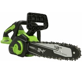 Цепная аккумуляторная пила GreenWorks 24 вольт (модель GD24CS30) - небольшая, легкая (всего 2,6 кг) садовая пила. Благодаря ее компактным размерам она легко помещается в багажнике автомобиля или даже в рюкзаке. Ее надежный бесщеточный двигатель DigiPro сопоставим по мощности с бензиновыми аналогами. Основные характеристики: Тип: аккумуляторная пила Тип пилы: цепная Объем бака: 0.16 л Длина пильной шины: 12" (30 см) Шаг цепи: 3/8" Ширина паза цепи: 1.1 мм Количество звеньев цепи: 46 Вес: 2.6 кг Цвет: черный/зеленый Особенности: Тип двигателя: бесщеточный Прорезиненная рукоятка: да Без ключевая замена и натяжение цепи: да Автоматическая смазка цепи: да Натяжение цепи: без использования инструментов Комплектация: Цепная пила, Руководство по эксплуатации
