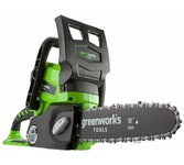 Комплект: Цепная пила аккумуляторная Greenworks Арт. 2007807UA, 40V, 30 см, с 1xАКБ 2Ач и ЗУ. Цепная пила аккумуляторная Greenworks Арт. 2007807UA, 40V, 30 см, с 1xАКБ 2Ач и ЗУ - небольшая, легкая (всего 2,7 кг) садовая пила. Благодаря ее компактным размерам она легко помещается в багажнике автомобиля или даже в рюкзаке. Это отличный выбор для пиления бревен, обрезки толстого кустарника и сучков, . Подойдет так же рыбакам, охотникам и любителям походов.