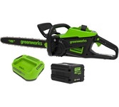 GREENWORKS Цепная пила 2008807UB, аккумуляторная, 40В, 4Ач, без АКБ, с одним аккумулятором