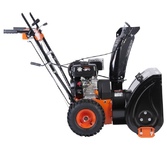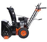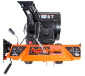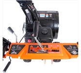 Снегоуборщик Huter SGC 4800EX обеспечивает мощность и производительность. Оснащенный двигателем мощностью 7 л.с, он позволяет убирать тяжелый мокрый снег с большой дальностью выброса. Он оснащен высокоэффективным четырехтактным двигателем. Преимущество этой машины — наличие электрического и ручного стартера. Для быстрого запуска можно использовать стартер от электросети 220 В. Если нет возможности подключиться к розетке, снегоуборщик все равно пригоден к работе с ручным запуском двигателя. Еще одна отличительная особенность модели — ковш высотой 54 см. Он позволяет убирать высокие пласты снега и эффективно очищать территорию за малое количество проходов. Ширина ковша — 68 см. Для удобства уборки в сумерках или условиях плохой освещенности доступна фара. Элементы управления удобно расположены около рукояток, что упрощает работу. Зимние шины обеспечивают хорошее сцепление на снегу и льду. Количество скоростей для движения вперед — пять, назад — две. Технические характеристики: