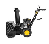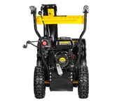 Снегоуборщик Huter SGC 6,8 предназначен для уборки от снега небольших дачных и придомовых участков, подъездных дорожек. Благодаря небольшим габаритам хорошо очищает труднодоступные места. Снегоуборщик оснащён бензиновым двигателем мощностью 7 л.с. и пятью скоростями вперёд и двумя назад. Ширина захвата при одном проходе составляет 56 см. А высота захвата составляет 54 см. Высота подъема ковша регулируется металлическими башмаками. Рабочим органом является шнек спиралевидной формы из прочной углеродистой стали, поэтому снегоуборщик способен справляться со слежавшимся снегом, настом и даже кусками льда. Загребаемый снег выбрасывается через специальный жёлоб на 15 метров в сторону. Дальность выброса регулируется посредством наклона отражателя. Поворачивать желоб можно на 190° прямо в процессе работы. Технические характеристики: Мощность двигателя: 7 л.с. Тип двигателя: бензиновый Число