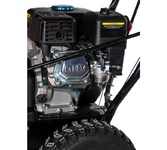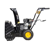Снегоуборщик Huter SGC 4100 предназначен для расчистки небольших территорий от снега. Самоходная модель оснащена 4-тактным бензиновым двигателем мощностью 7 л.с. Ширина захвата за один проход составляет 56 сантиметров, шнек с зубцами измельчает плотный снег. Благодаря глубокому протектору колеса не скользят при гололеде, обеспечивая хорошую проходимость машины. Поворот желоба регулируется специальным рычагом. Технические характеристики: Мощность двигателя: 7 л.с. Тип двигателя: бензиновый Число тактов: 4 Тип топлива: бензин АИ-92 Способ охлаждения: воздушный Мощность: 5,15 кВт Передачи: 5 вперед / 2 назад Ширина захвата: 56 см Высота захвата: 54 см Электро