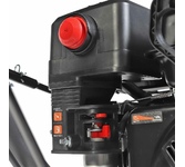 Снегоуборщик Huter SGC 4100 предназначен для расчистки небольших территорий от снега. Самоходная модель оснащена 4-тактным бензиновым двигателем мощностью 7 л.с. Ширина захвата за один проход составляет 56 сантиметров, шнек с зубцами измельчает плотный снег. Благодаря глубокому протектору колеса не скользят при гололеде, обеспечивая хорошую проходимость машины. Поворот желоба регулируется специальным рычагом. Технические характеристики: Мощность двигателя: 7 л.с. Тип двигателя: бензиновый Число тактов: 4 Тип топлива: бензин АИ-92 Способ охлаждения: воздушный Мощность: 5,15 кВт Передачи: 5 вперед / 2 назад Ширина захвата: 56 см Высота захвата: 54 см Электро
