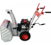 Снегоуборщик Huter SGC 6,8 предназначен для уборки от снега небольших дачных и придомовых участков, подъездных дорожек. Благодаря небольшим габаритам хорошо очищает труднодоступные места. Снегоуборщик оснащён бензиновым двигателем мощностью 7 л.с. и пятью скоростями вперёд и двумя назад. Ширина захвата при одном проходе составляет 56 см. А высота захвата составляет 54 см. Высота подъема ковша регулируется металлическими башмаками. Рабочим органом является шнек спиралевидной формы из прочной углеродистой стали, поэтому снегоуборщик способен справляться со слежавшимся снегом, настом и даже кусками льда. Загребаемый снег выбрасывается через специальный жёлоб на 15 метров в сторону. Дальность выброса регулируется посредством наклона отражателя. Поворачивать желоб можно на 190° прямо в процессе работы. Технические характеристики: Мощность двигателя: 7 л.с. Тип двигателя: бензиновый Число