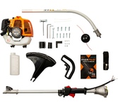 Мощность 1400/1,9 Вт/л.с; Объем двигателя 36 см3; топливный бак 0,63 л; 8500 об/мин; велосипедная рукоятка; неразборная штанга; кошение кордом 440 мм; кошение ножом 255 мм; Уровень мощности звука 110 дБ, вес нетто 6,2 кг