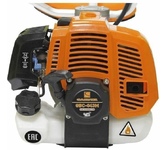 Тип двигателя: бензиновый. Расположение двигателя: верхнее. Форма штанги: прямая. Мощность двигателя (Вт): 1250. Объем двигателя: 43. Кол-во тактов двигателя: двухтактный. Емкость топливного бака: 0.95. Режущий элемент: леска и нож. Диаметр круга стрижки: 46. Диаметр используемой лески: 2.4. Размер используемого ножа: 230. Тип крепления триммера: ранцевое. Вес товара: 8. Комплект поставки: Триммер бензиновый, ранцевый ремень, документация, диск (нож), катушка с леской.. Особенности: Усовершенствованный дизайн; Легкий доступ к воздушному фильтру; Удобное управление, вынесенное на рукоятку; Жесткий вал на 6-ти опорных подшипниках; Наплечный ранец; Облегченный диск с твердосплавными зубьями; Хромированный цилиндр; Усиленный редуктор. Мощность двигателя (л.с.): 1.7. Обороты двигателя: 7600. Материал ножа: металл. Тип косильной катушки: ручная. Форма рукоятки: U-образная. Тип штанги: неразборная штанга. Посадочный диаметр диска: 25.4. Расход топлива: 1.3. Уровень шума: 110. Габариты упаковки (ед) ДхШхВ: 1.651x0.11