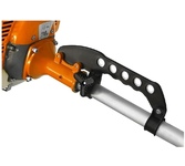 Преимущества: Каждый экземпляр подвергается полному выходному контролю с запуском двигателя и проверкой работоспособности всех систем управления Современный дизайн, оптимальная эргономика Двигатель оснащен системой "Легкий старт", удобный запуск без лишних рывков. Цельнометаллический кованый вал Электронное зажигание В комплекте - все, что нужно для комфортной эффективной работы: двухплечный разгрузочный ремень ранцевого типа, трехлопастной нож, полуавтоматическая косильная головка Характеристики: Тип двигателя: 2-тактный воздушного охлаждения Объем двигателя, куб. см: 43 Мощность двигателя, кВт/л.с.: 1,4/1,9 Максимальные обороты на выходном валу редуктора (без рабочего органа), об/мин: 7500 Тип зажигания: электронное Марка бензина (рекомендованная): АИ-92 Пропорция топливной смеси (рекомендованная): 40:1 Ёмкость топливного бака, л: 1,2 Тип ножа: трёхлопастный Наружный диаметр ножа, мм: 255 Посадочный размер ножа, мм: 25,4 Тип косильной головки: полуавтоматическая Рекомендуемый диаметр лески, мм: 2,4 Присоеди