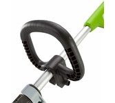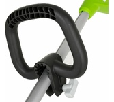 Мощность 1,2 кВт. Напряжение 230 В. Максимальный диаметр лески 2 мм. Ширина скашивания леской 380 мм. Ширина скашивания ножом 230 мм. Крепление шпули M10 x 1.25 LH. Режущий элемент леска,нож. Приводной вал жесткий стальной вал. Тип ручки D-образная. Тип штанги разборная. Тип скидки Силовое.