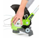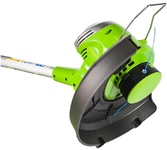 Ширина скашивания травы, мм 300 Ширина скашивания леской, мм 300 Диаметр режущей лески, мм 1,6 Рекомендуемая площадь обработки, м² 150 Частота вращения, об/мин 0-8500 Напряжение аккумулятора, В 21 Емкость аккумулятора, А*ч 1,5 Тип аккумулятора Li-ion Время работы на одном заряде до 25 минут Время зарядки аккумулятора до 1,5 часов Аккумулятор и ЗУ в комплекте один АКБ и ЗУ Диаметр штанги, мм 25 Тип посадки катушки Сменная шпулька Тип рукоятки D-образная Тип штанги регулируемая по высоте Регулировка высоты ручки есть Приводной вал без приводного вала Форма штанги прямая Режущий элемент леска Тип двигателя коллекторный Тип ремня нет Расположение двигателя нижнее