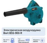 Вес брутто, кг: 2,58. Вес изделия, кг: 1,8. Вес нетто, кг: 2,58. Габариты упаковки, см: 35,5 x 19,5 x 22,5. Гарантия, г: 2. Длина кабеля, м: 2. Максимальная производительность, м3/час: 300. Модель: BSS-900-R. Напряжение, В: 220. Потребляемая мощность, Вт: 900. Расширенная гарантия, г: 5. Регулировка скорости. Скорость холостого хода, об/мин: 0...16 000. Тип пылесоса: Воздуходувка. Уровень шума, дБ: 75. Функция выдува: Да. Частота тока, Гц: 50.