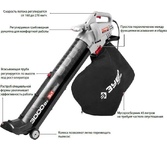 Тип: Воздуходувка-пылесос. Скорость воздушного потока: 370. Объем воздушного потока: 860. Возможность измельчения: отсутствует. Тип электропитания: от аккумулятора. Тип аккумулятора: Li-Ion. Напряжение аккумулятора: 40. Аккумулятор: приобретается отдельно. Зарядное устройство в комплекте: приобретается отдельно. Цвет: зеленый. Габариты упаковки (ед) ДхШхВ: 0.54x0.37x0.281. Вес упаковки (ед): 1.77. Страна производства: Китай. Гарантия: 24 мес.. Аккумулятор: тип аккумулятора Li-Ion, 40 В. Воздушный поток: 370 км/ч, 860 м3/час. Тип электропитания: от аккумулятора