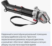 Частота вращения, об/мин 15000, Объем воздуха, м3/час 720, Объем травосборника, л 45, Мощность двигателя, кВт 2, Скорость воздуха, м/сек 75, Функции обдув, измельчение, всасывание,