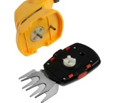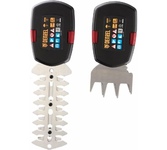 Аккумуляторный кусторез предназначен для снятия проросшей сквозь плиточные швы травы, правится с побегами крыжовника, малины, хвойниками. После установки опорных колес подравняет газон вдоль дорожек и заборов, подстрижет поросль у деревьев и клумб. Справится с ветками диаметром до 8 мм. В комплекте две насадки — для травы и для кустарников. Ширина насадки для травы — 100 мм, длина ножа для кустарников — 200 мм. Не скользят в руке, благодаря прорезиненной рукоятке. Поставляется без аккумулятора и зарядного устройства.
