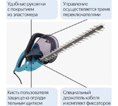 Длина ножей 600мм, мощность 1,3л.с, поворотная рукоятка, аккуратное подравнивание, блокировка случайного включения, лазерная заточка лезвий