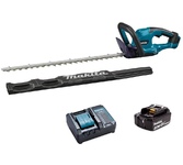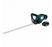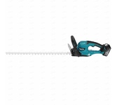 Мощность двигателя: 250. Частота ходов: 2700. Длина основного ножа для кустов: 600. Ширина ножа для травы: 15. Расстояние между ножами: 28. Тип электропитания: от аккумулятора. Емкость аккумулятора: 3. Напряжение аккумулятора: 18. Тип аккумулятора: Li-Ion. Продолжительность работы от аккумулятора: 60. Индикатор заряда батареи: нет. Антиблокировочная система: нет. Защитное устройство ножа: нет. Защитный тормоз: есть. Ножи с алмазной заточкой: нет. Смена ножей без инструмента: нет. Комплект ножниц для травы и кустов: нет. Длина инструмента: 1029. Высота инструмента: 209. Вес товара: 2.8. Комплект поставки: Аккумуляторный кусторез, коробка, защита ножа Makita, аккумулятор 3 Ач, зарядное устройство DC18WC.. Аккумулятор в комплекте: есть. Зарядное устройство в комплекте: есть. Габариты упаковки (ед) ДхШхВ: 1.09x0.26x0.211. Вес упаковки (ед): 3.3. Страна производства: Китай. Гарантия: 12 мес.. Мощность: 250 Вт. Длина основного ножа для кустов: 600 мм. Аккумулятор: Li-Ion, 18 В; 3 Ач. Электропитание: от аккумулятора