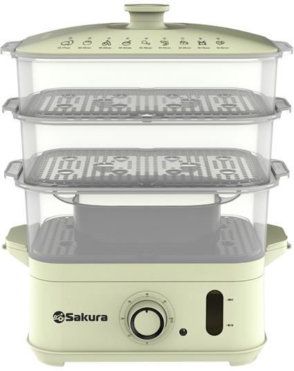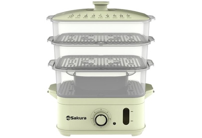 900 Вт, 14.0 л, 3 яруса, резервуар для воды: общий объем – 2,5л, полезный объем - 1.5л, чаша для варки яиц/риса 1.2 л, высота 1 корзины: 7.5 см, механическое управление, таймер на 60 минут со звуковым сигналом, индикатор уровня воды, возможность долива воды в процессе приготовления, отключение при включении без воды и защита от перегрева, световой индикатор, компактное хранение. Цвет корпуса: белый молочный. Длина шнура: 0,8 м. Размеры прибора: 35*23*44см, в сложенном виде: 35*23*29см.
