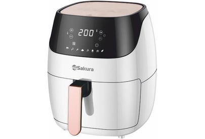 Аэрогриль, 1500 Вт, чаша с антипригарным покрытием Teflon 5,0 л, таймер на 60 минут, регулировка температуры 80-200С, сенсорное управление, LED дисплей, готовит без масла или с минимальным его использованием. Автоматическое отключение питания при извлечении корзины. 8 предустановленных программ меню. Подходит для всех блюд, которые готовятся в духовке. Размер устройства без упаковки: 300?300?340 мм. Длина шнура: 1м.