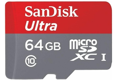 SANDISK Карта памяти microSDXC UHS-I Ultra 64 ГБ, 100 МБ/с, Class 10, SDSQUNR-064G-GN3MN, 1 шт., без