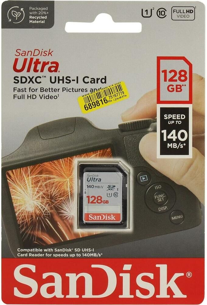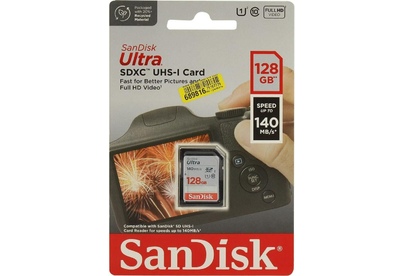SANDISK Карта памяти SDXC UHS-I Ultra 128 ГБ, 140 МБ/с, Class 10, SDSDUNB-128G-GN6IN
