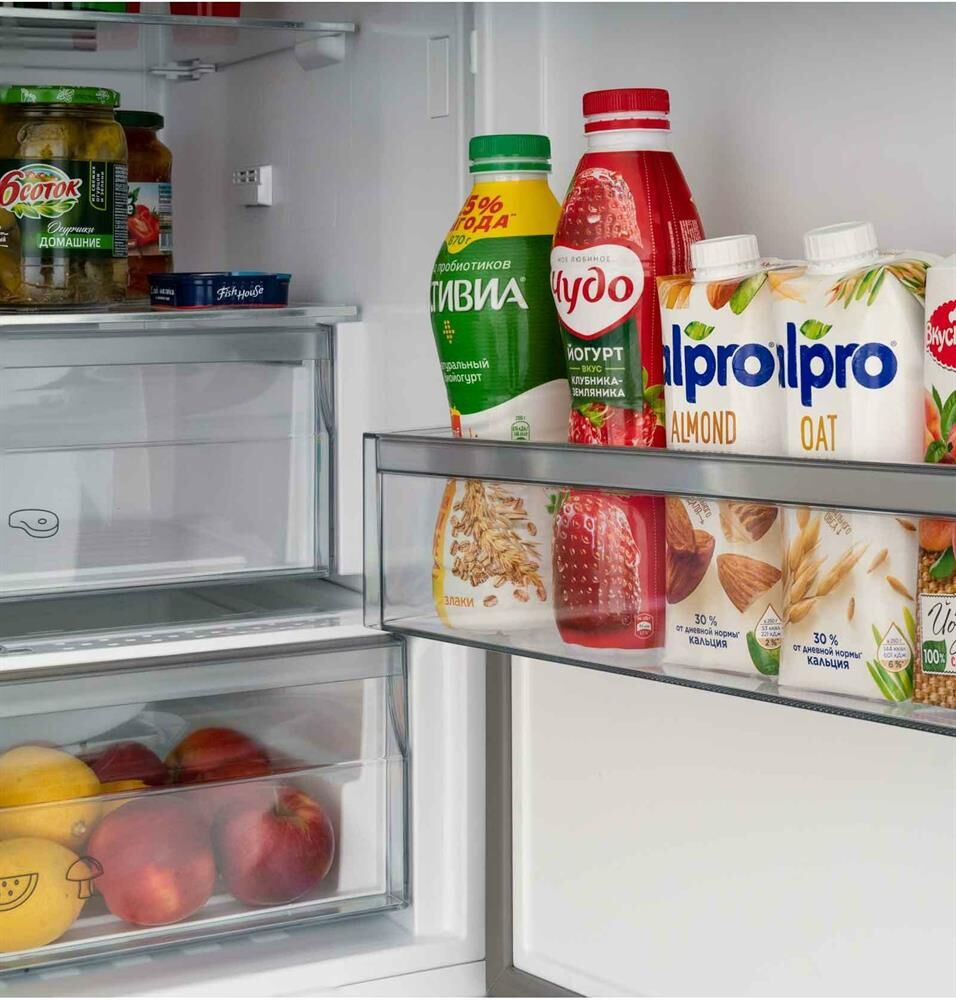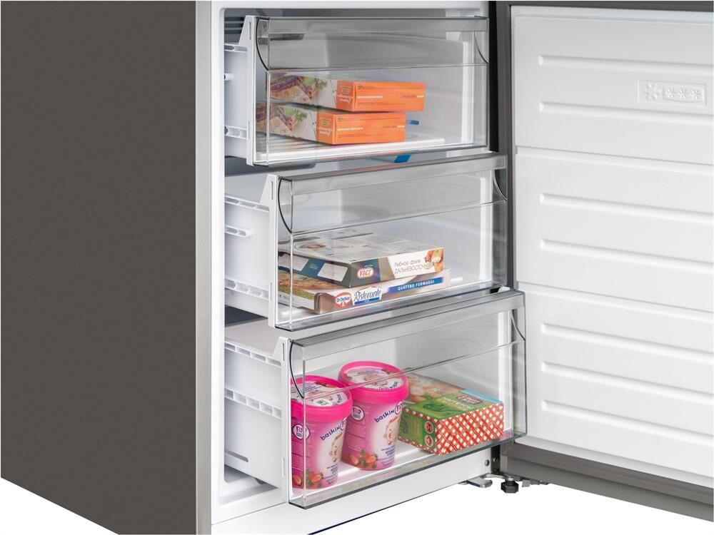 Количество камер: двухкамерный. Расположение морозильной камеры: снизу. Тип управления: электронное. Класс энергопотребления: A++. Система размораживания: No Frost. Общий объем холодильника: 379. Общий объем холодильной камеры: 275. Общий объем морозильной камеры: 104. Уровень шума: 42. Количество компрессоров: один. Хранение при отключении питания: 18. Мощность замораживания: 8. Количество полок: 4. Количество ящиков: 3. Материал полок: стекло. Зона свежести: есть. Антибактериальное покрытие: есть. Система размораживания: No Frost. Тип: Холодильник. Полезный объем холодильника: 360. Полезный объем холодильной камеры: 266. Полезный объем морозильной камеры: 94. Хладагент: R600a. Количество ящиков: 2. Вес (нетто): 78. Количество дверей: 2. Тип компрессора: стандартный. Габариты упаковки (ед) ДхШхВ: 0.755x0.65x2.045. Вес упаковки (ед): 89. Страна производства: Турция. Количество полок на дверце: 4. Материал дверей: стекло. Наличие морозильной камеры: есть. Технология зоны свежести: Fresh Zone. Тип дисплея: внеш