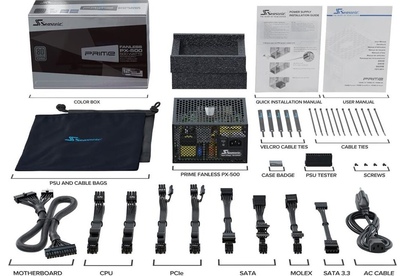 SEASONIC Блок питания ATX 500W PRIME Fanless PX-500 80+ platinum 24pin APFC 8xSATA Cab Manag RTL