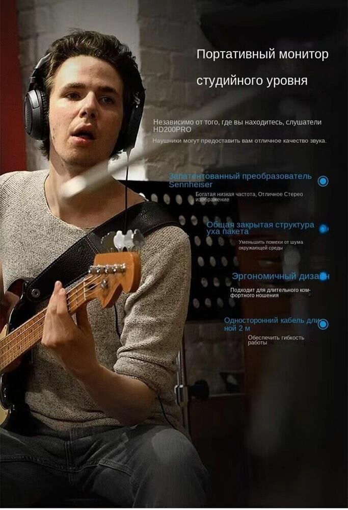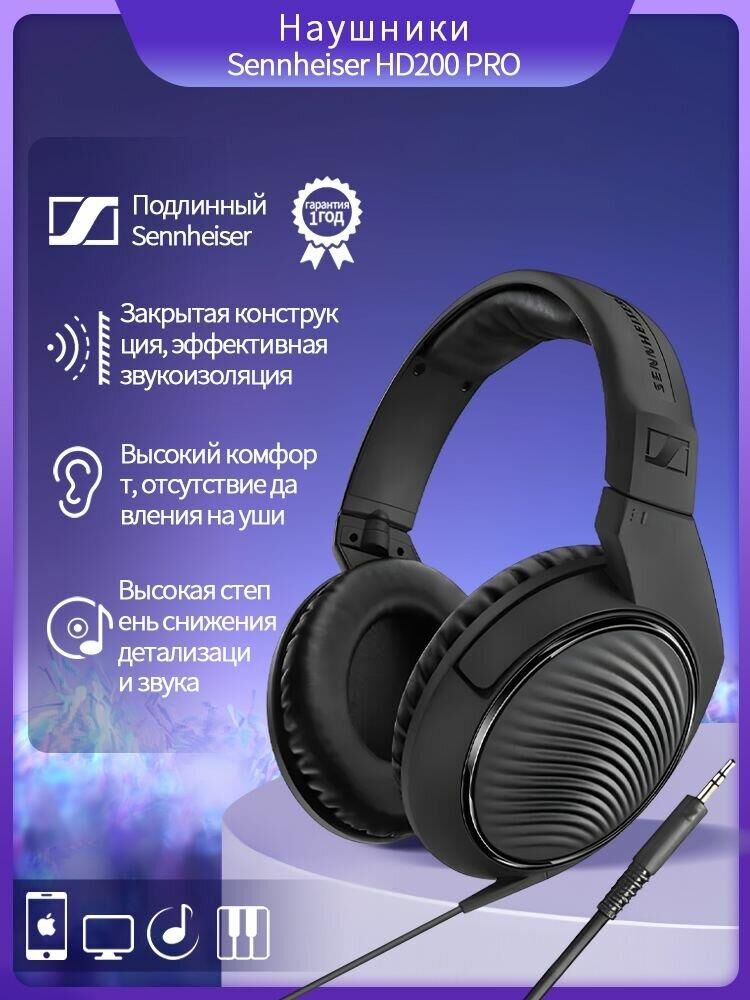 SENNHEISER Наушники накладные HD 200 PRO 2м черный проводные оголовье (507182)