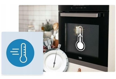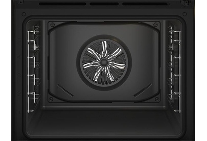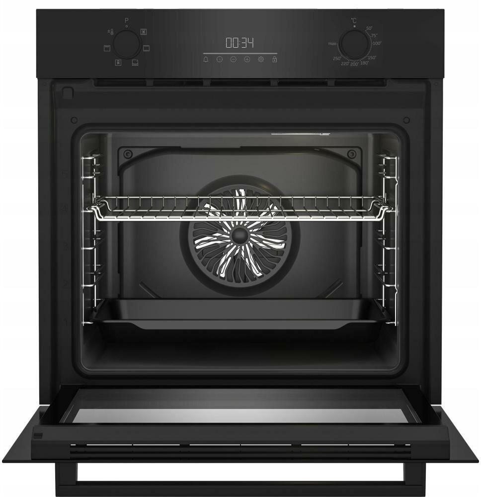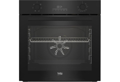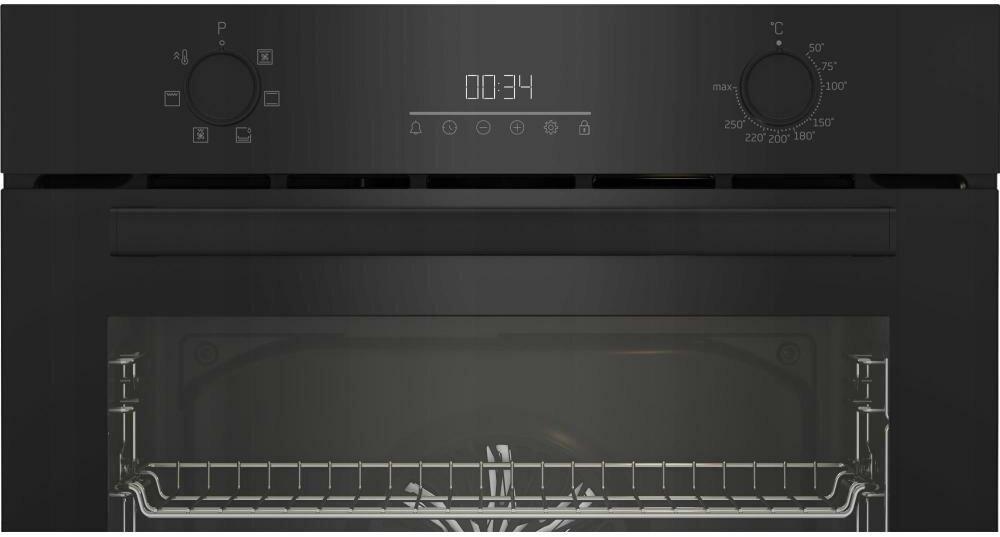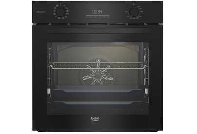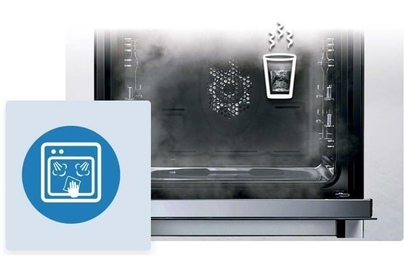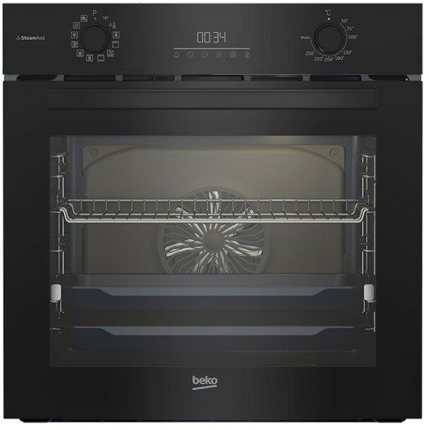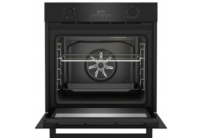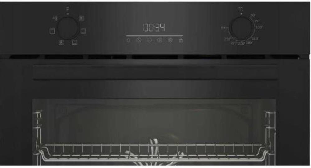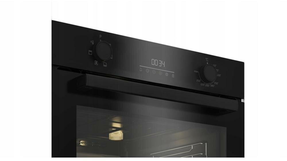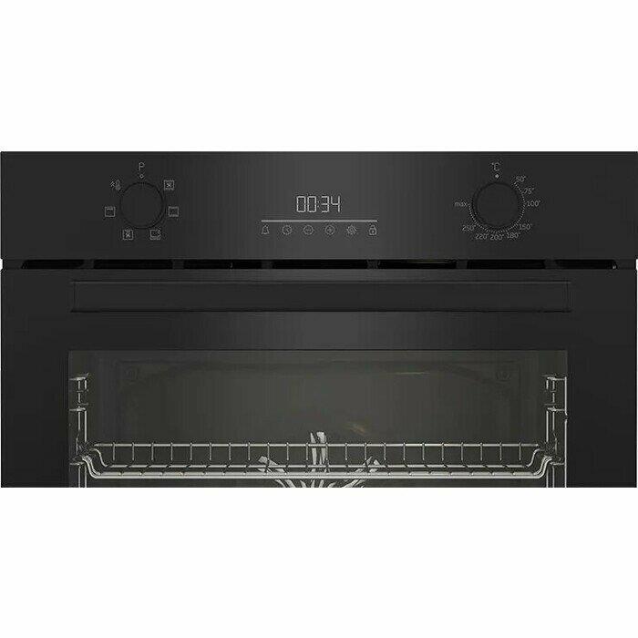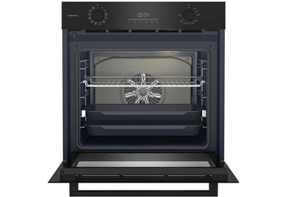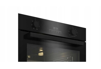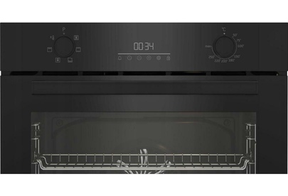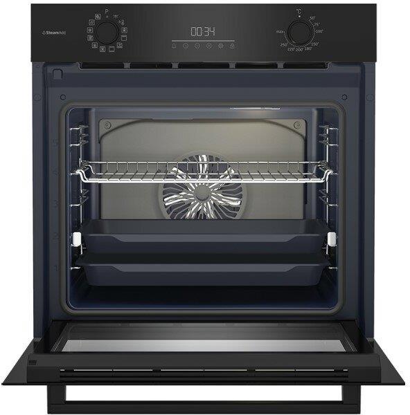 Электрический духовой шкаф; 6 режимов; LED дисплей; поворотные переключатели; система очистки паром; металлические направляющие; объем - 72л; 2 стекла дверцы; 1 решетка; 1 противень; Цвет: Черный; Материал панели управления: Стекло