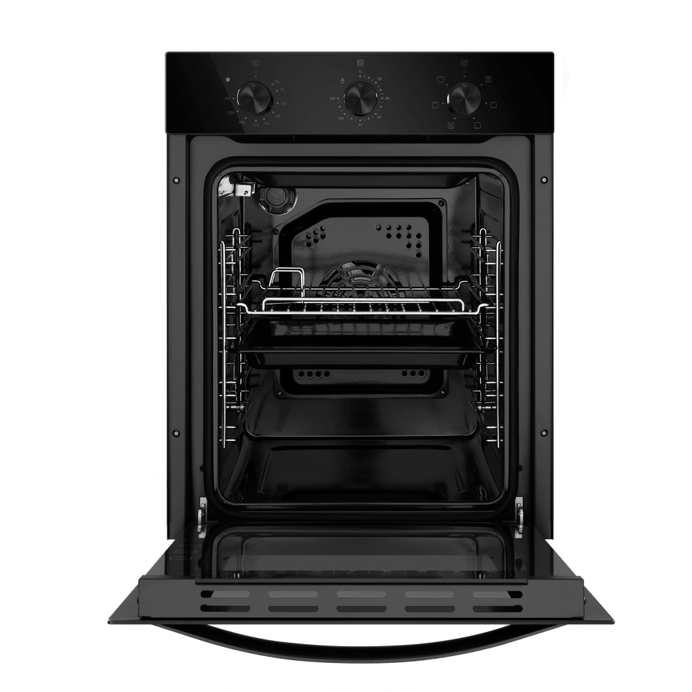 Духовой шкаф Maunfeld EOEC516B2 очень компактный. Его ширина всего 45 сантиметров. Благодаря этому вы легко разместите его даже на небольшой кухне. Объем рабочей камеры составляет 51 литр. Этого вполне достаточно для того, чтобы приготовить любые стандартные блюда. Устройство выполнено в стильном черном дизайне. Оно органично дополнит темную мебель и создаст элегантный контраст со светлой. Корпус сделан из прочного металла. В устройстве предусмотрено тангенциальное охлаждение. Встроенный вентилятор работает во время приготовления пищи и охлаждает корпус по всему периметру. Поверхность снаружи не нагревается. Внутри установлена яркая лампа. Вы легко сможете проверить готовность блюда. Духовой шкаф Маунфилд EOEC516B2 может работать в шести режимах. Гриль позволяет запекать мясо. Верхний и нижний нагрев удобно комбинировать с конвекцией. Горячий воздух перемещается внутри камеры, блюда пропекаются со всех сторон. Имеется встроенный таймер. Вам больше не нужно постоянно контролировать готовку. Настро