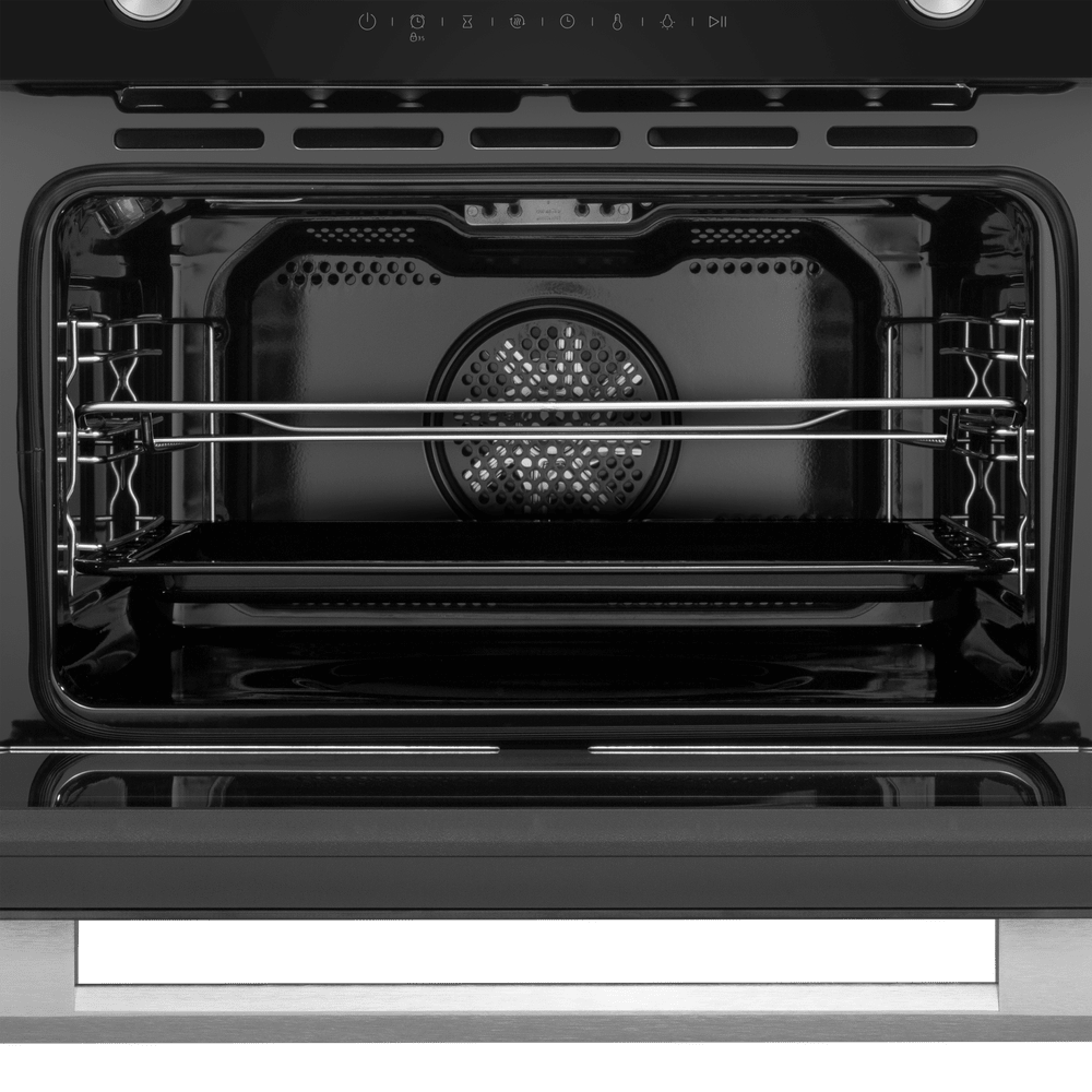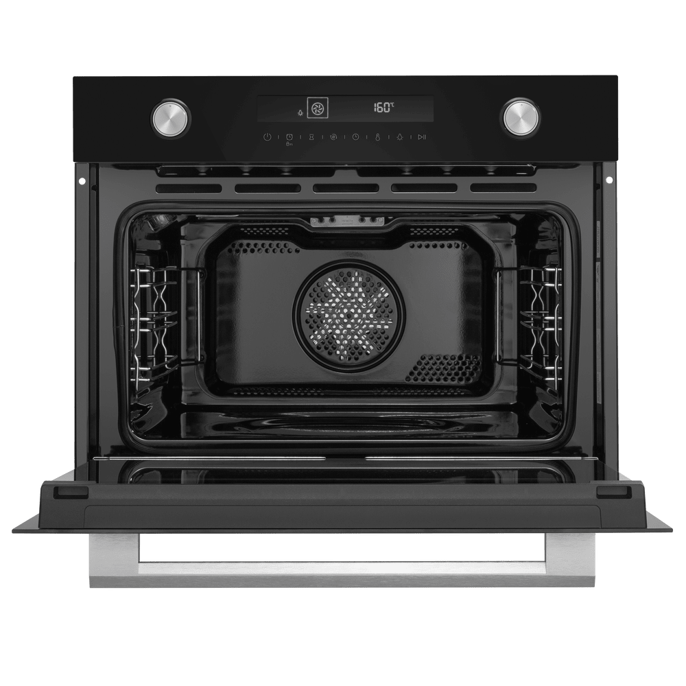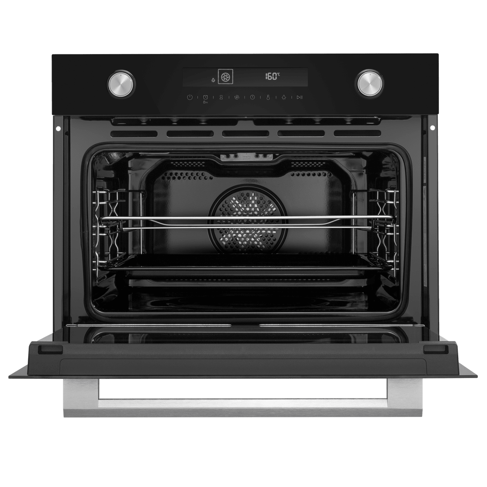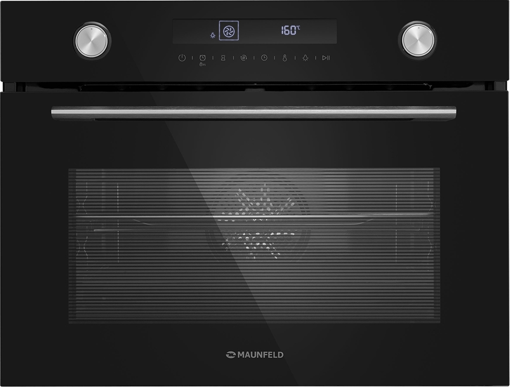 Духовой шкаф Maunfeld MCMO5013MDGB — это функциональное и современное оснащение вашей кухни. Встраиваемая конструкция обеспечивает значительную экономию места. Для размещения техники понадобится ниша размерами 46×60×55 см, при этом объем рабочего пространства камеры составит 50 л. Вы сможете приготовить пирог или торт, запечь мясо и овощи. Основной цвет прибора черный, фурнитура — оттенка «нержавеющая сталь». Такое сочетание подойдет к любому современному интерьеру. Вымыть внутреннюю поверхность камеры легко благодаря специальной эмали легкой очистки. К тому же модель имеет опцию очищения паром AquaClean. Духовой шкаф Маунфилд MCMO5013MDGB оснащен электронным управлением с помощью сенсоров и утапливаемых поворотных элементов. Дисплей показывает время и активные настройки устройства. Благодаря таймеру ваше блюдо не подгорит, а звуковой сигнал даст понять, что приготовление закончено. Тринадцать режимов готовки позволяют сделать ваш стол максимально разнообразным. Разные настройки нагрева и конвекц