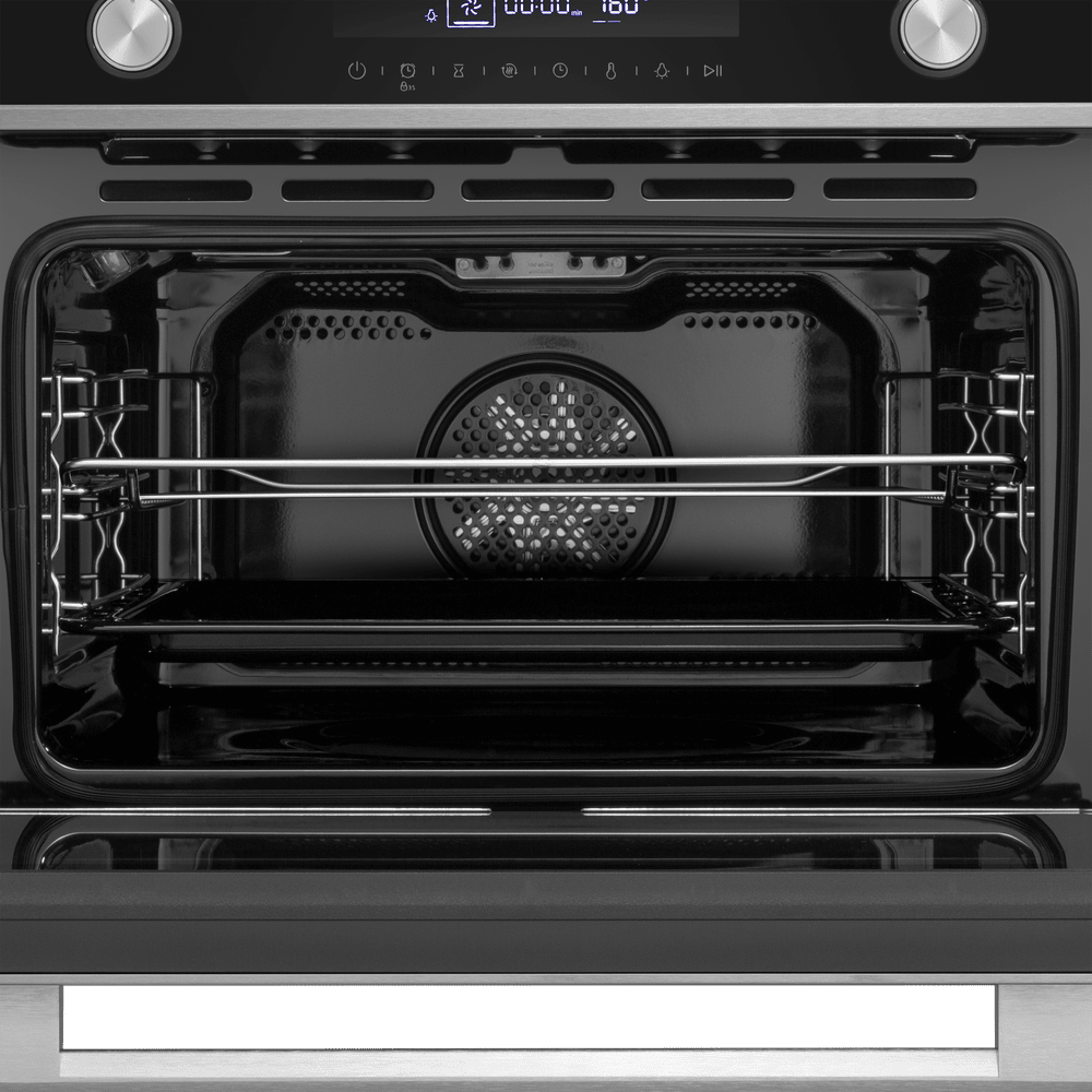 Электрический духовой шкаф Maunfeld MCMO5013MDS в цвете "нержавеющая сталь" оснащен электронной панелью управления с сенсорным дисплеем и утапливаемыми поворотными переключателями. Стильный дизайн прибора поможет вписать его в современный интерьер кухни. Очистка паром AquaClean позволит не использовать химические чистящие средства, что обеспечит экологичное и комфортное использование устройства. В комплект входят: стандартный противень и решетка для гриля. Ключевые преимущества: Защита от детей Сенсорный дисплей Очистка паром AquaClean