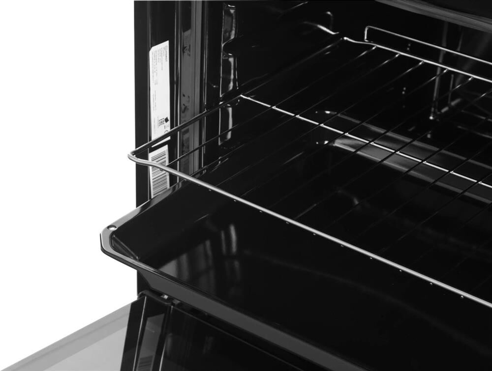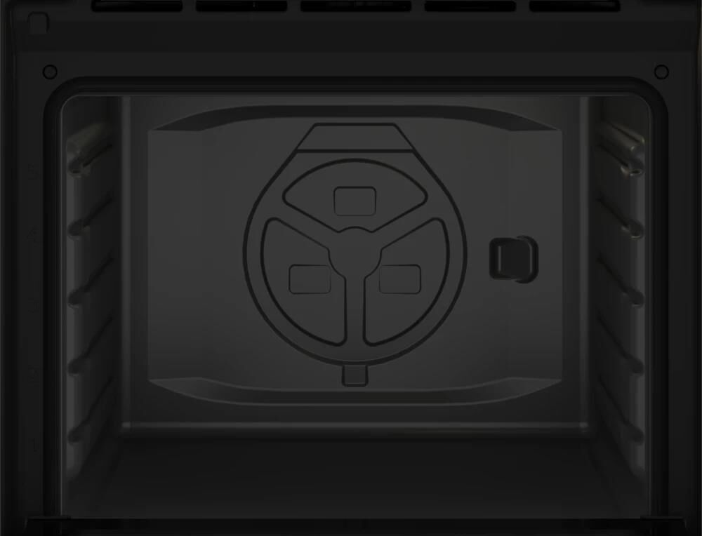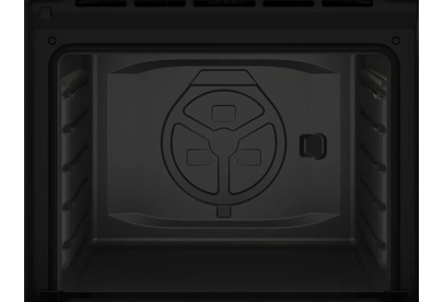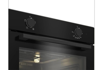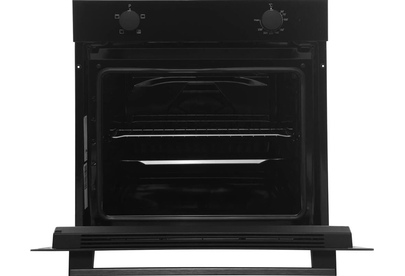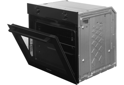 Электрический духовой шкаф; 4 программы; поворотные переключатели; рельефные направляющие; объем - 72л.; 2 стекла дверцы; 1 решетка; 1 противень; цвет - черный