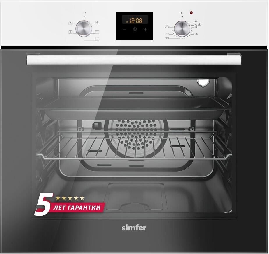 Электрический духовой шкаф Simfer B6EW56001 - современная техника для кухни, которая благодаря многообразию режимов, позволяет готовить не только повседневную пищу, но и изысканные блюда. Для старта работы духовки, необходимо выбрать режим приготовления и выставить температуру. Она снабжена функцией конвекции, которая равномерно распределяя теплый воздух, пропекает блюдо со всех сторон. С помощью удобных поворотных ручек легко выбрать необходимый режим приготовления для любого рецепта.